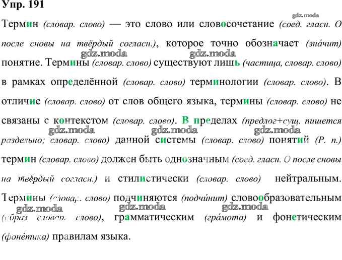ОТВЕТ на задание № 191 Учебник по Русскому языку 6 класс Александрова