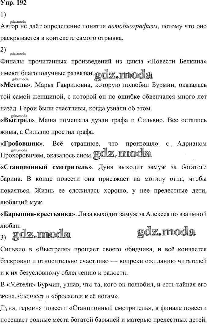 ГДЗ решение к заданию № 192 Русский родной язык 6 класс Александрова О.М. Просвещение 2020 ФГОС бесплатно на гдз.мода!