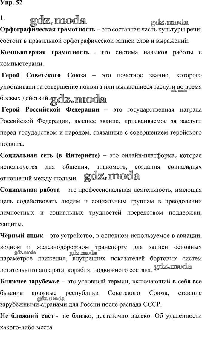ГДЗ решение к заданию № 52 Русский родной язык 6 класс Александрова О.М. Просвещение 2020 ФГОС бесплатно на гдз.мода!