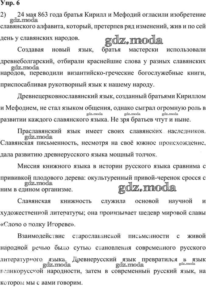 ГДЗ решение к заданию № 6 Русский родной язык 6 класс Александрова О.М. Просвещение 2020 ФГОС бесплатно на гдз.мода!