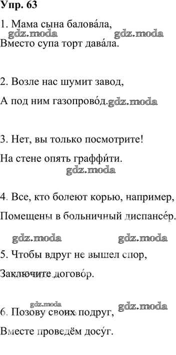 ОТВЕТ на задание № 63 Учебник по Русскому языку 6 класс Александрова