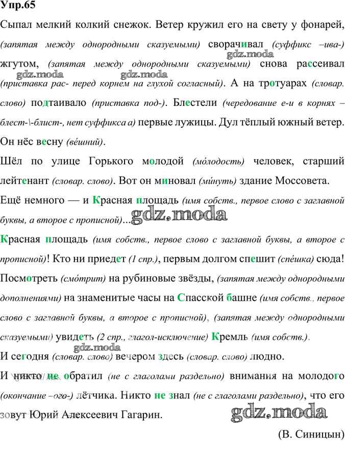 ОТВЕТ на задание № 65 Учебник по Русскому языку 6 класс Александрова