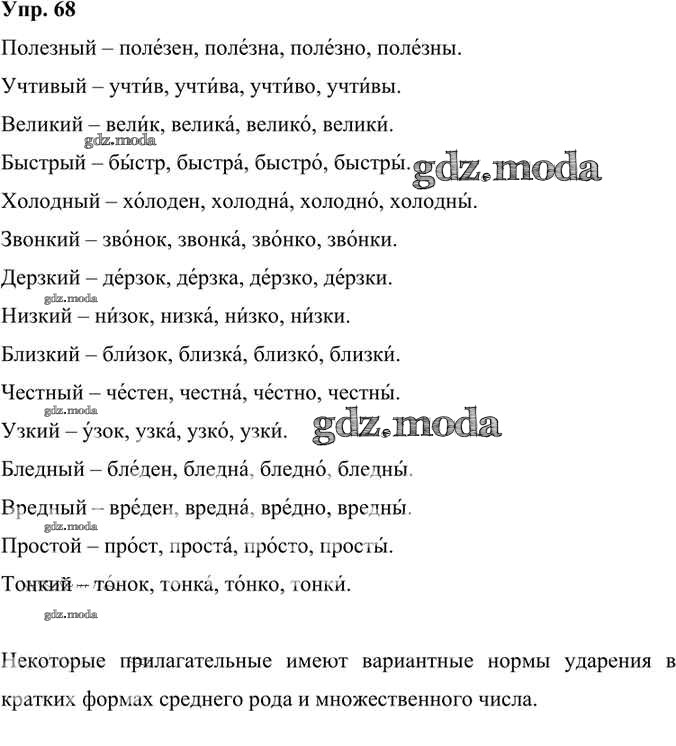 ОТВЕТ на задание № 68 Учебник по Русскому языку 6 класс Александрова