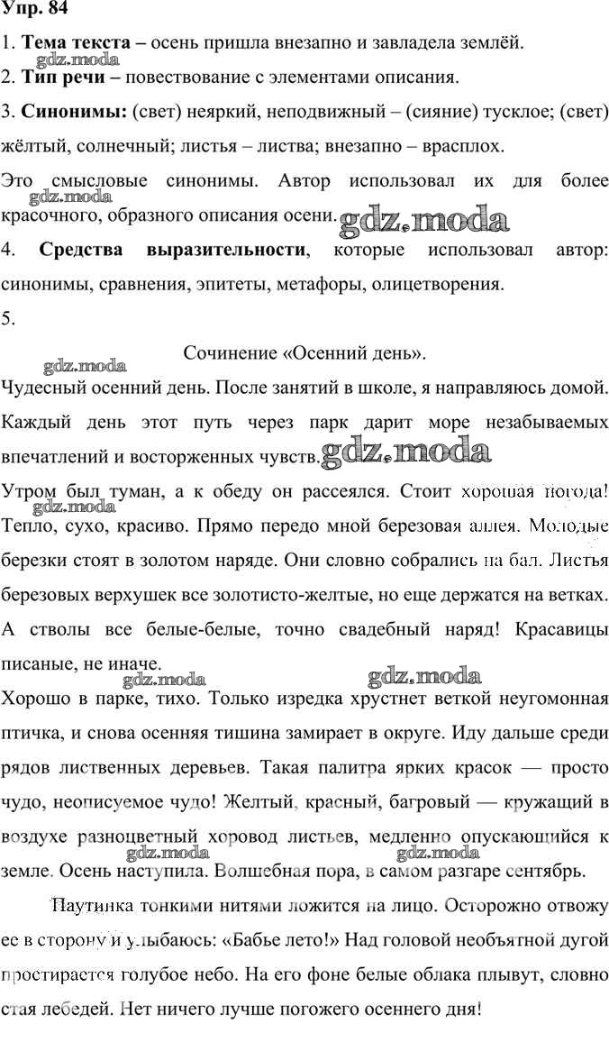 ГДЗ решение к заданию № 84 Русский родной язык 6 класс Александрова О.М. Просвещение 2020 ФГОС бесплатно на гдз.мода!