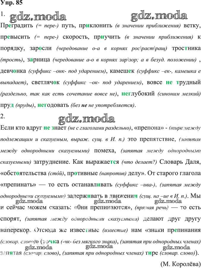 ОТВЕТ на задание № 85 Учебник по Русскому языку 6 класс Александрова