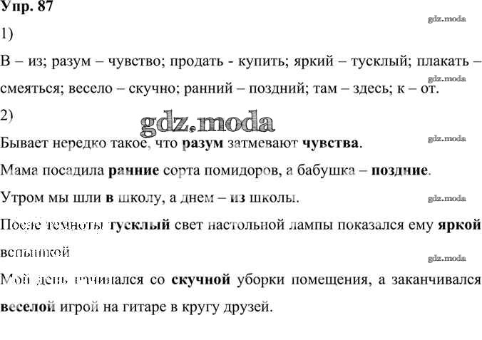 ОТВЕТ на задание № 87 Учебник по Русскому языку 6 класс Александрова