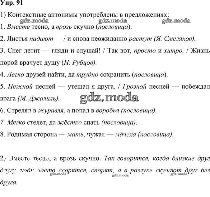 ГДЗ решение к заданию № 91 Русский родной язык 6 класс Александрова О.М. Просвещение 2020 ФГОС бесплатно на гдз.мода!