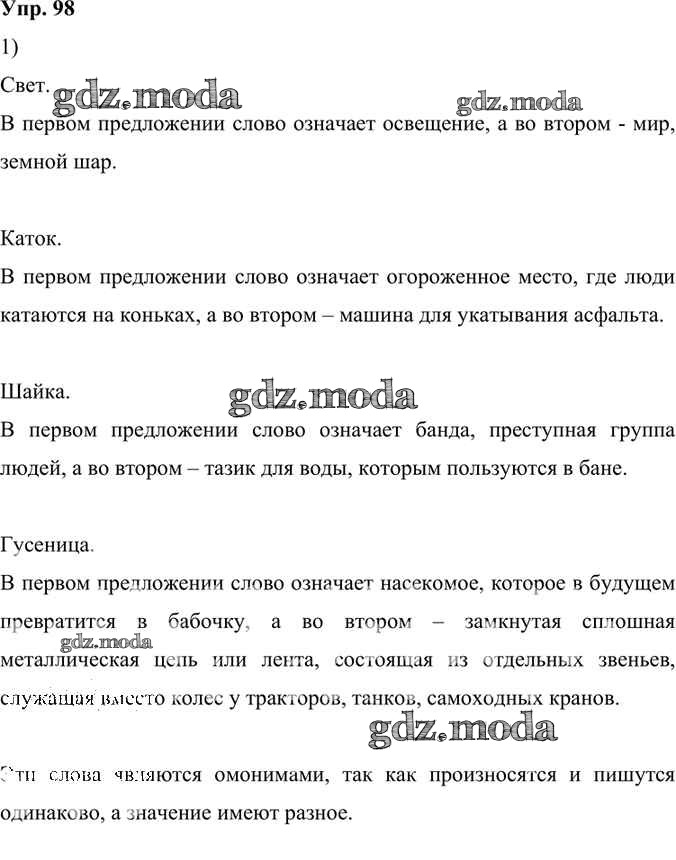 ОТВЕТ на задание № 98 Учебник по Русскому языку 6 класс Александрова