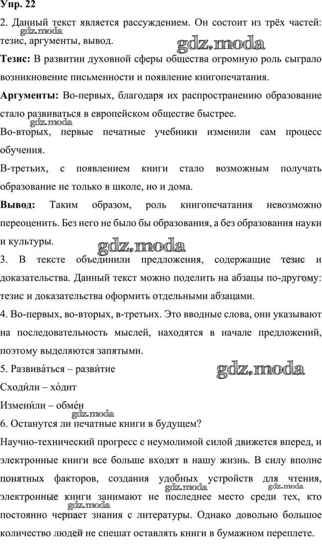 ГДЗ решение к заданию № 22 Русский язык 6 класс Быстрова Е.А. Русское слово 2016 Часть 1, Часть 2 ФГОС бесплатно на гдз.мода!