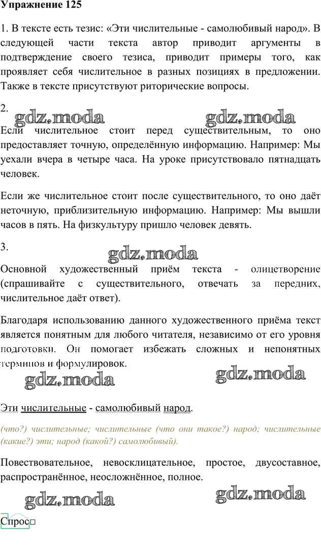 ОТВЕТ на задание № 125 Учебник по Русскому языку 6 класс Быстрова Инновационная школа