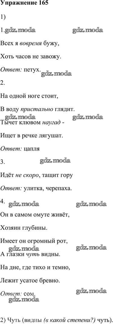 ГДЗ решение к заданию № 165 Русский язык 6 класс Быстрова Е.А. Русское слово 2016 Часть 1, Часть 2 ФГОС бесплатно на гдз.мода!