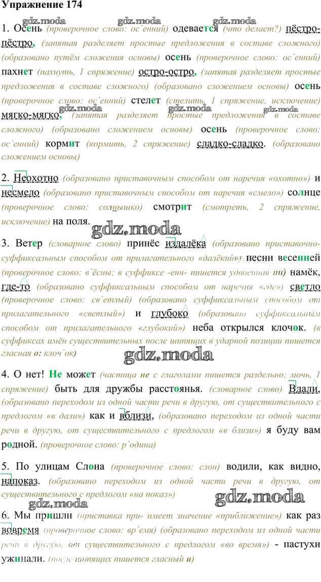 ОТВЕТ на задание № 174 Учебник по Русскому языку 6 класс Быстрова Инновационная школа