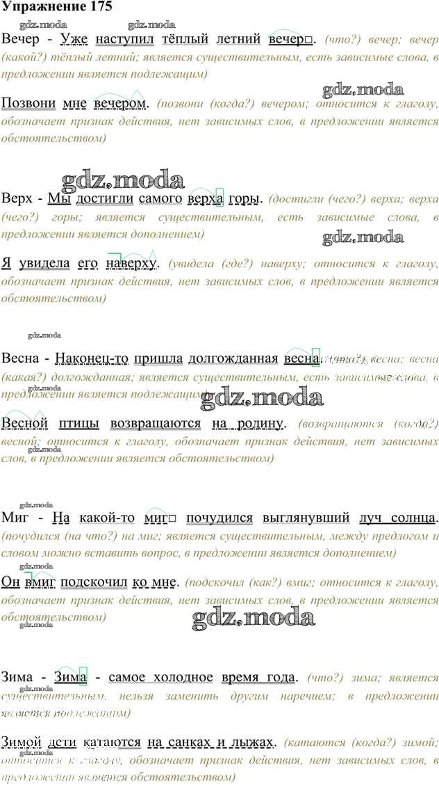 ГДЗ решение к заданию № 175 Русский язык 6 класс Быстрова Е.А. Русское слово 2016 Часть 1, Часть 2 ФГОС бесплатно на гдз.мода!