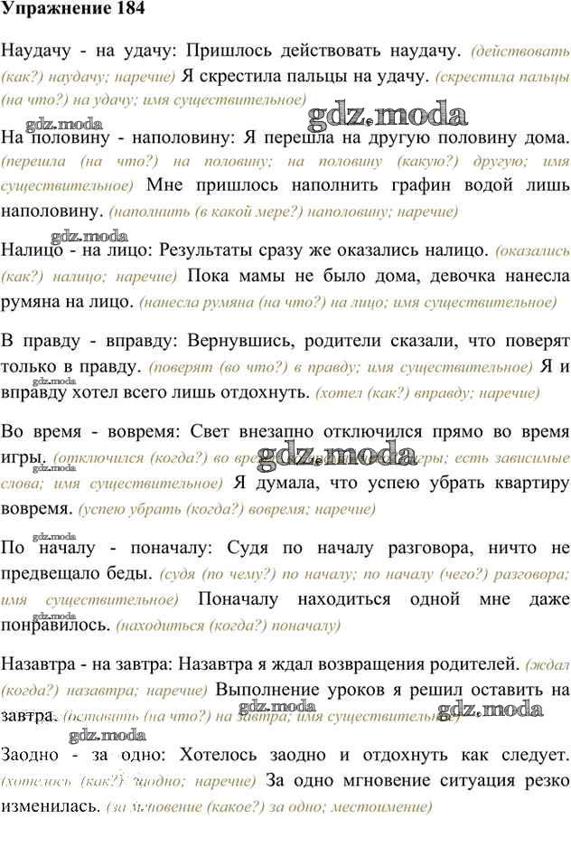 ГДЗ решение к заданию № 184 Русский язык 6 класс Быстрова Е.А. Русское слово 2016 Часть 1, Часть 2 ФГОС бесплатно на гдз.мода!