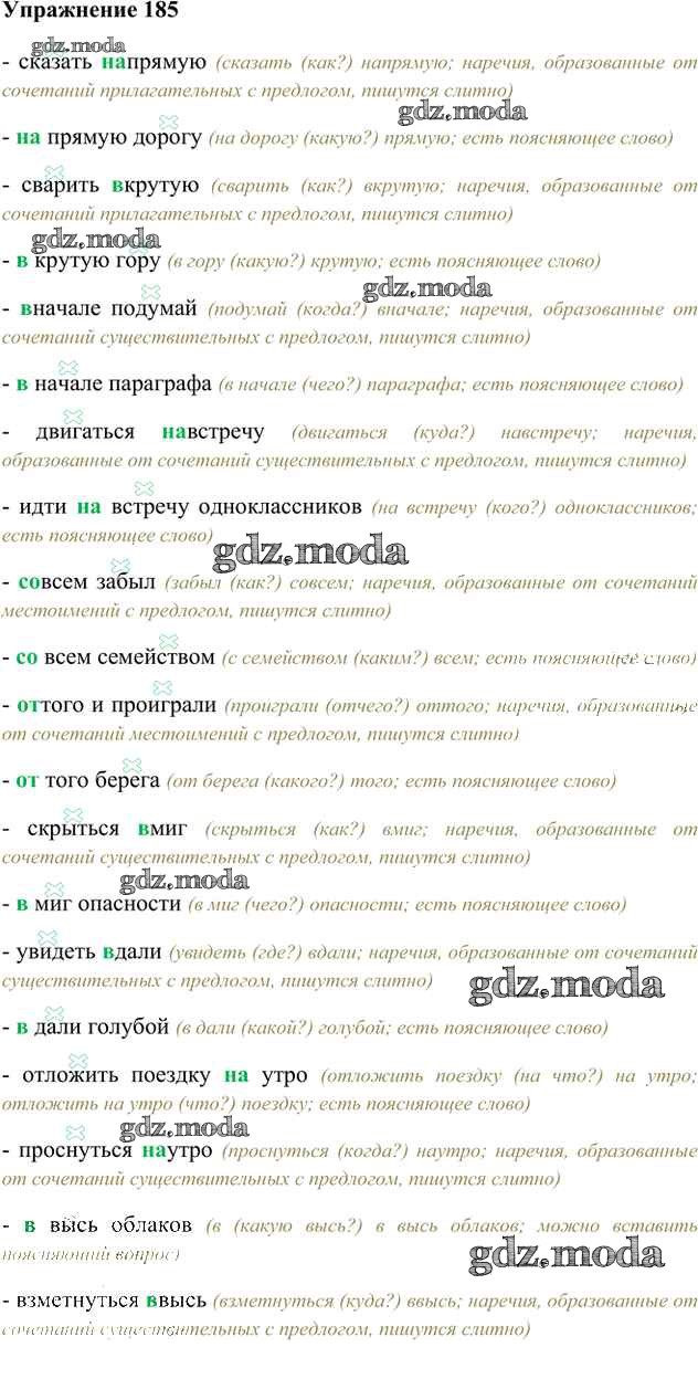 ОТВЕТ на задание № 185 Учебник по Русскому языку 6 класс Быстрова Инновационная школа