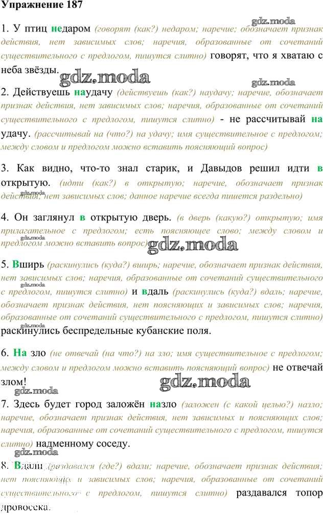 ГДЗ решение к заданию № 187 Русский язык 6 класс Быстрова Е.А. Русское слово 2016 Часть 1, Часть 2 ФГОС бесплатно на гдз.мода!
