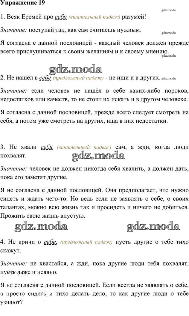 ГДЗ решение к заданию № 19 Русский язык 6 класс Быстрова Е.А. Русское слово 2016 Часть 1, Часть 2 ФГОС бесплатно на гдз.мода!