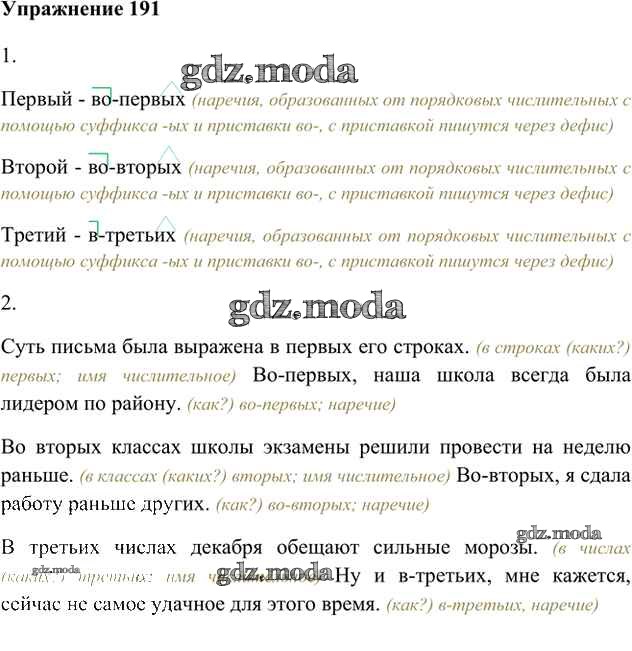 ОТВЕТ на задание № 191 Учебник по Русскому языку 6 класс Быстрова Инновационная школа