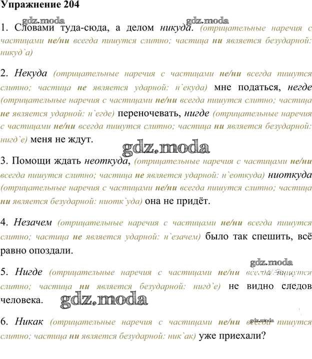 ОТВЕТ на задание № 204 Учебник по Русскому языку 6 класс Быстрова Инновационная школа