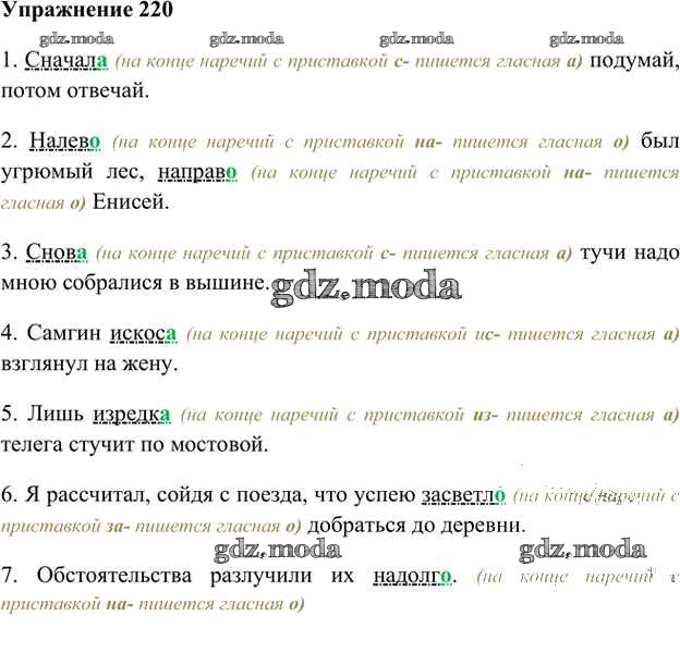 ОТВЕТ на задание № 220 Учебник по Русскому языку 6 класс Быстрова Инновационная школа