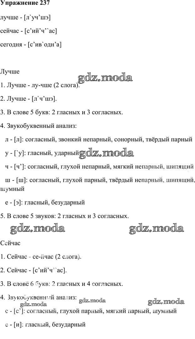 ГДЗ решение к заданию № 237 Русский язык 6 класс Быстрова Е.А. Русское слово 2016 Часть 1, Часть 2 ФГОС бесплатно на гдз.мода!