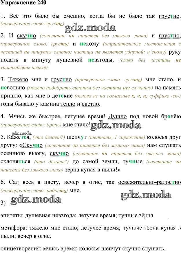 ОТВЕТ на задание № 240 Учебник по Русскому языку 6 класс Быстрова Инновационная школа