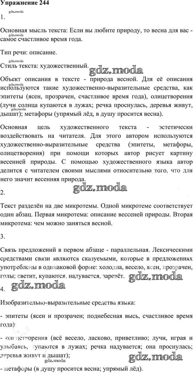 ОТВЕТ на задание № 244 Учебник по Русскому языку 6 класс Быстрова Инновационная школа