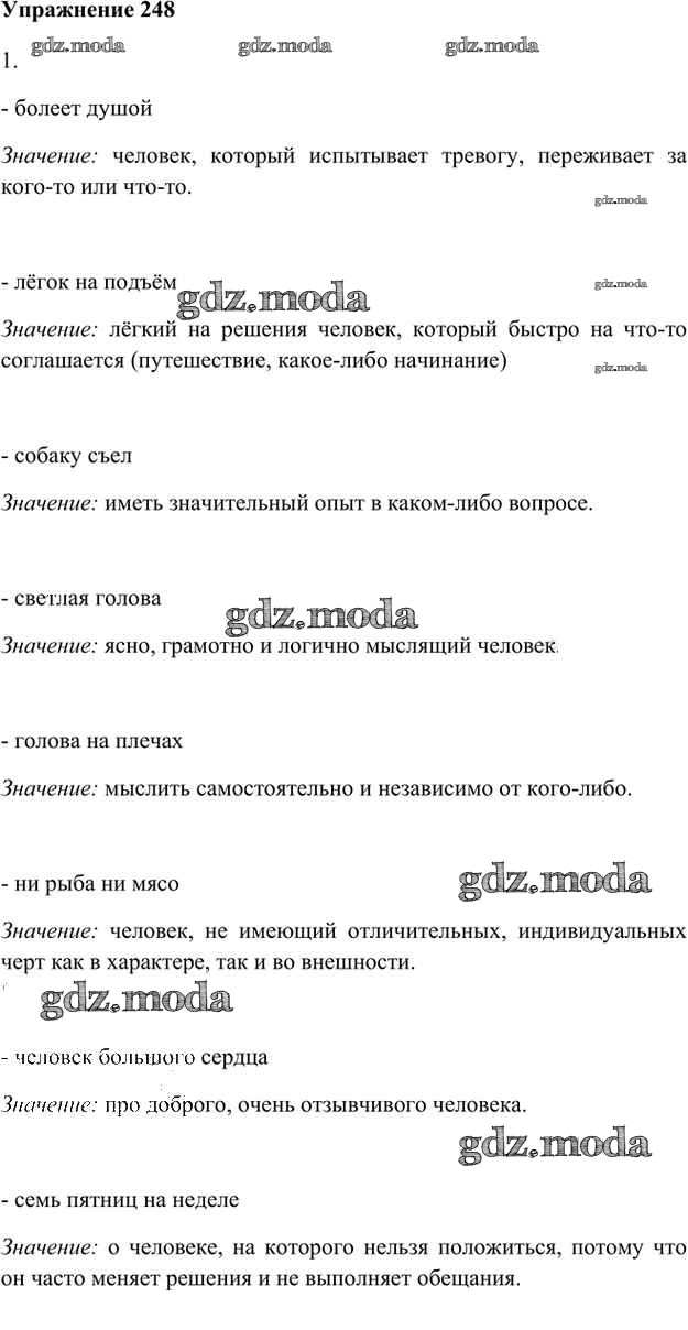 ГДЗ решение к заданию № 248 Русский язык 6 класс Быстрова Е.А. Русское слово 2016 Часть 1, Часть 2 ФГОС бесплатно на гдз.мода!