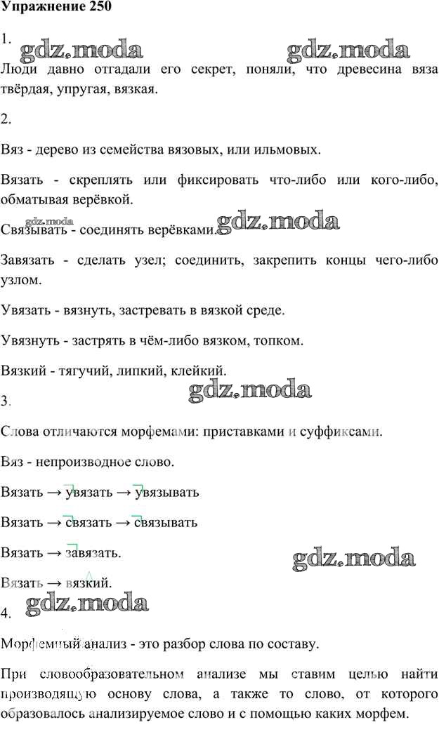 ОТВЕТ на задание № 250 Учебник по Русскому языку 6 класс Быстрова Инновационная школа
