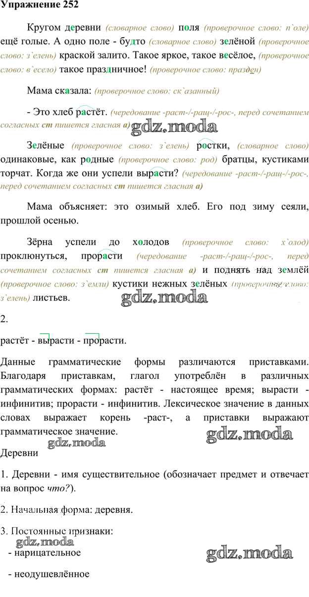 ГДЗ решение к заданию № 252 Русский язык 6 класс Быстрова Е.А. Русское слово 2016 Часть 1, Часть 2 ФГОС бесплатно на гдз.мода!