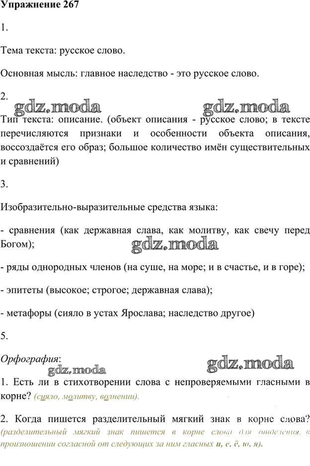 ОТВЕТ на задание № 267 Учебник по Русскому языку 6 класс Быстрова Инновационная школа