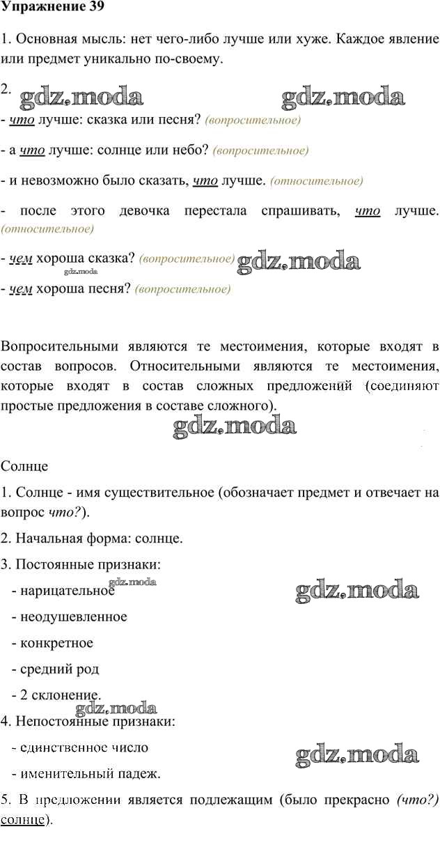 ГДЗ решение к заданию № 39 Русский язык 6 класс Быстрова Е.А. Русское слово 2016 Часть 1, Часть 2 ФГОС бесплатно на гдз.мода!
