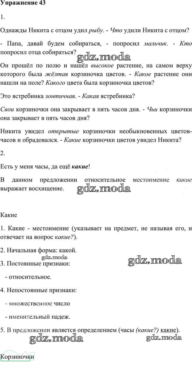 ГДЗ решение к заданию № 43 Русский язык 6 класс Быстрова Е.А. Русское слово 2016 Часть 1, Часть 2 ФГОС бесплатно на гдз.мода!