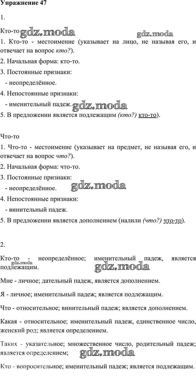 ГДЗ решение к заданию № 47 Русский язык 6 класс Быстрова Е.А. Русское слово 2016 Часть 1, Часть 2 ФГОС бесплатно на гдз.мода!