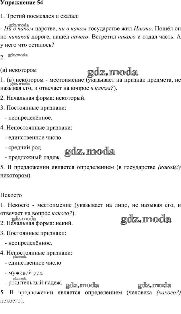 ГДЗ решение к заданию № 54 Русский язык 6 класс Быстрова Е.А. Русское слово 2016 Часть 1, Часть 2 ФГОС бесплатно на гдз.мода!