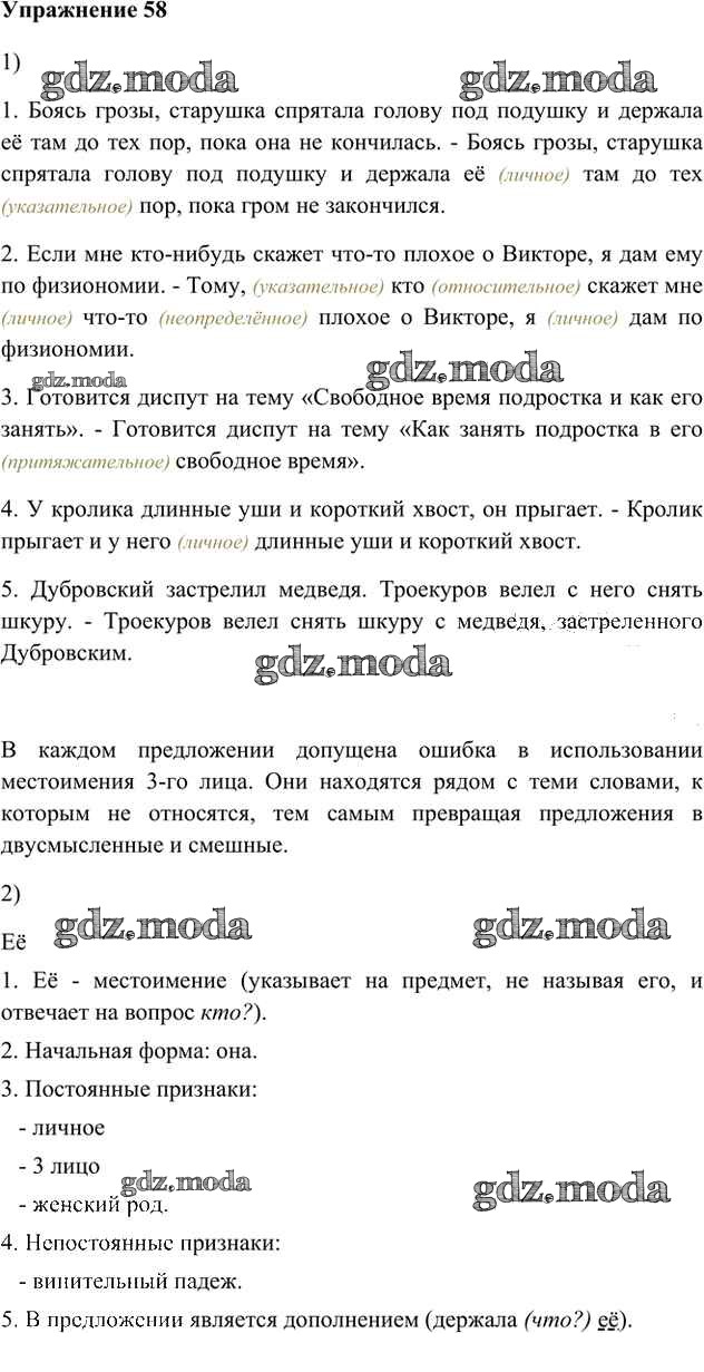 ГДЗ решение к заданию № 58 Русский язык 6 класс Быстрова Е.А. Русское слово 2016 Часть 1, Часть 2 ФГОС бесплатно на гдз.мода!