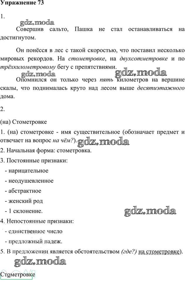 ГДЗ решение к заданию № 73 Русский язык 6 класс Быстрова Е.А. Русское слово 2016 Часть 1, Часть 2 ФГОС бесплатно на гдз.мода!