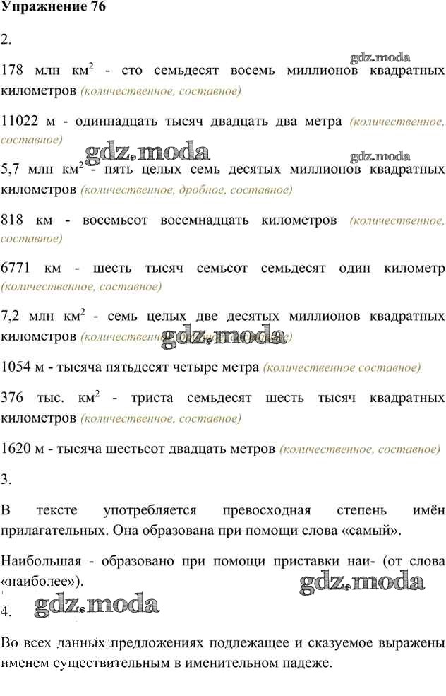 ОТВЕТ на задание № 76 Учебник по Русскому языку 6 класс Быстрова Инновационная школа