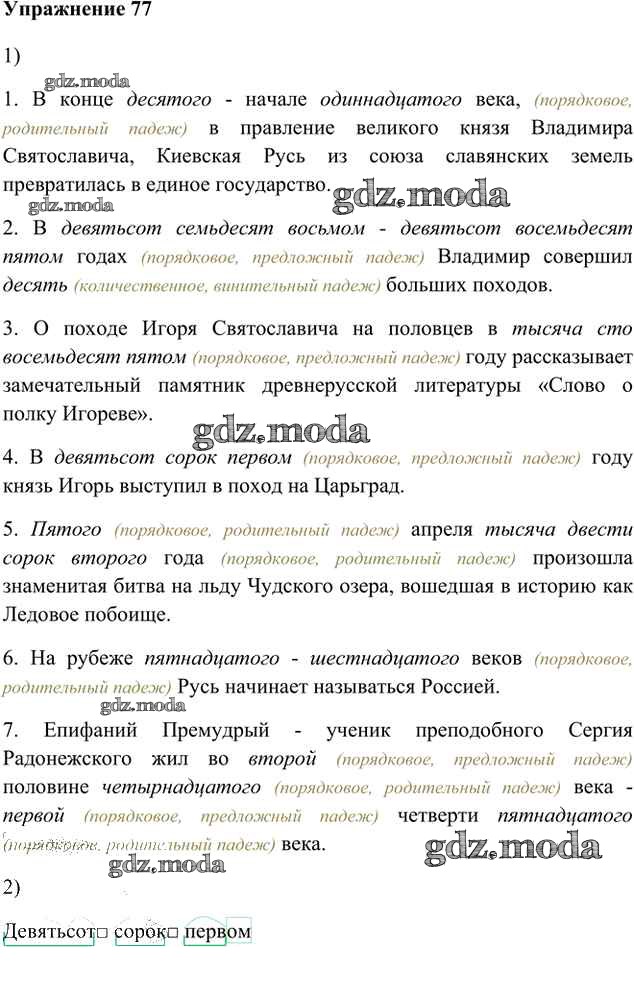 ОТВЕТ на задание № 77 Учебник по Русскому языку 6 класс Быстрова Инновационная школа