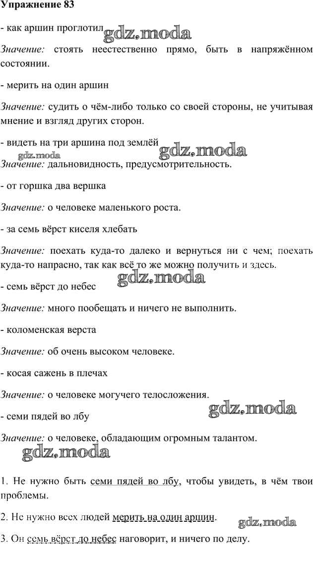 ГДЗ решение к заданию № 83 Русский язык 6 класс Быстрова Е.А. Русское слово 2016 Часть 1, Часть 2 ФГОС бесплатно на гдз.мода!