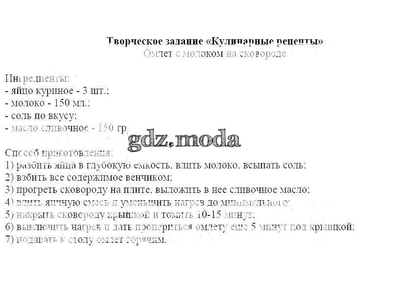 ГДЗ решение к заданию № Творческое задание - Кулинарные рецепты Технология 6 класс рабочая тетрадь Кожина О.А. Дрофа 2019 бесплатно на гдз.мода!