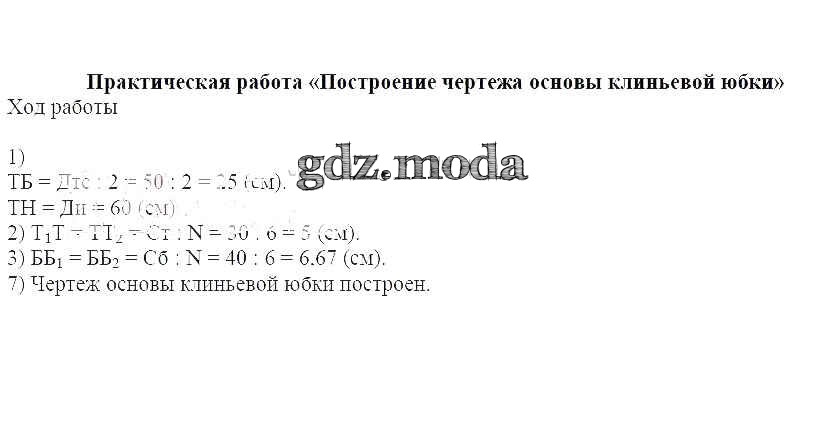 ОТВЕТ на задание № Построение чертежа основы клиньевой юбки - Рабочая тетрадь по Технологии 6 класс Кожина