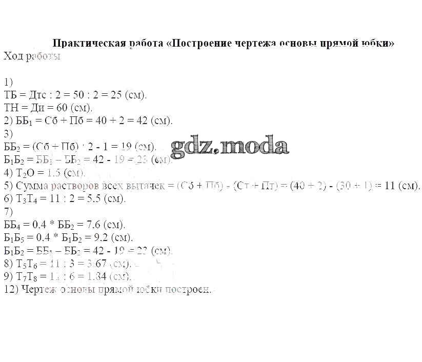 ОТВЕТ на задание № Построение чертежа основы прямой юбки Рабочая тетрадь по Технологии 6 класс Кожина