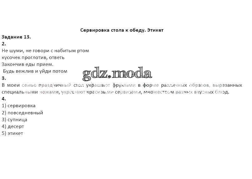 ГДЗ решение к заданию № 13 Технология 6 класс рабочая тетрадь Синица Н.В. Вентана-граф 2019 ФГОС бесплатно на гдз.мода!