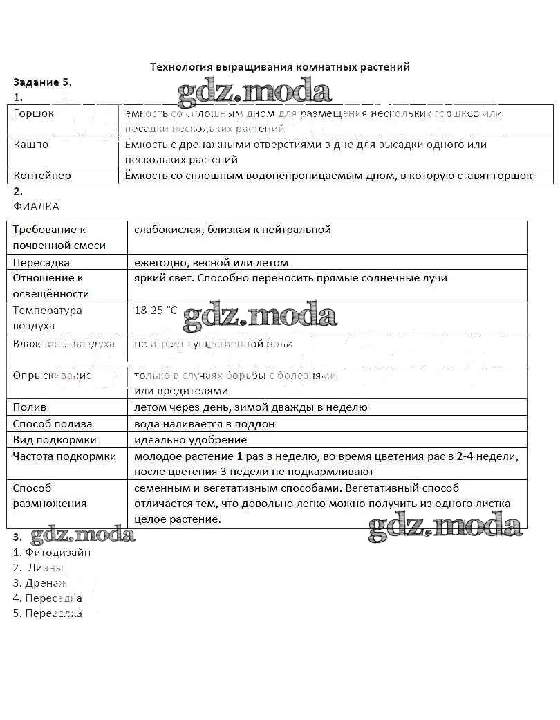 ГДЗ решение к заданию № 5 Технология 6 класс рабочая тетрадь Синица Н.В. Вентана-граф 2019 ФГОС бесплатно на гдз.мода!