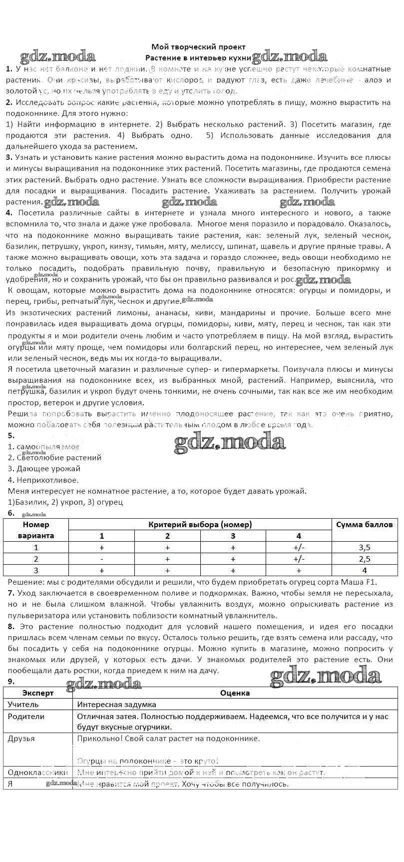 ОТВЕТ на задание № Растение в интерьер кухни Рабочая тетрадь по Технологии 6 класс Синица Алгоритм успеха