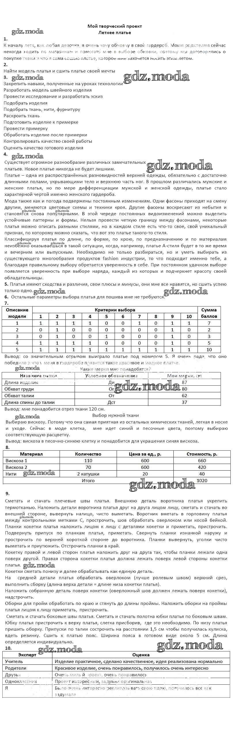 ГДЗ решение к заданию № Летнее платье Технология 6 класс рабочая тетрадь Синица Н.В. Вентана-граф 2019 ФГОС бесплатно на гдз.мода!