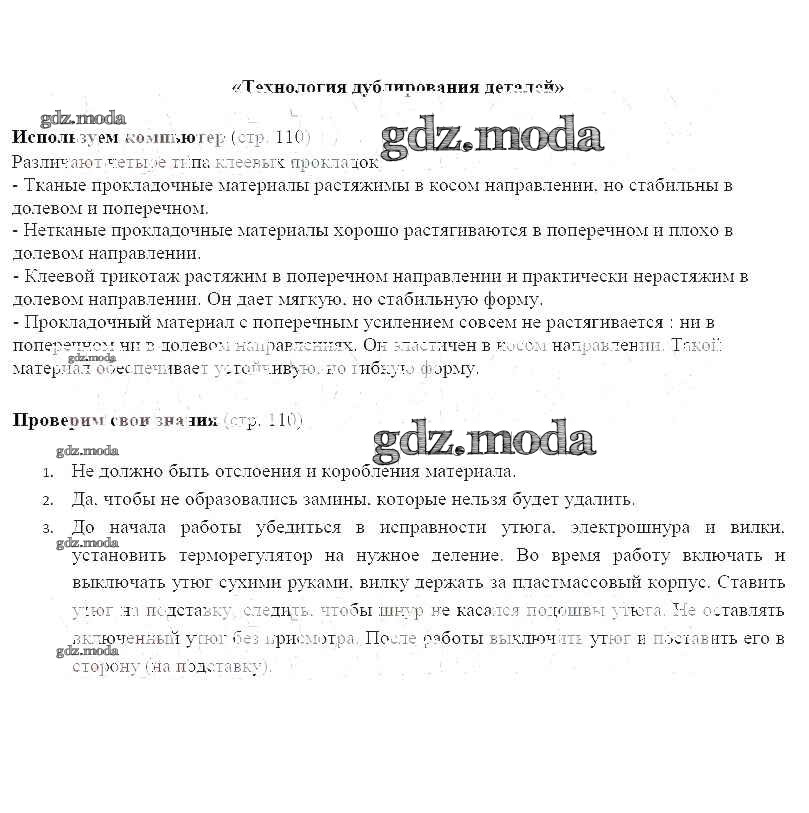 ГДЗ решение к заданию № 110 Технология 6 класс Синица Н.В. Вентана-граф 2019 ФГОС бесплатно на гдз.мода!