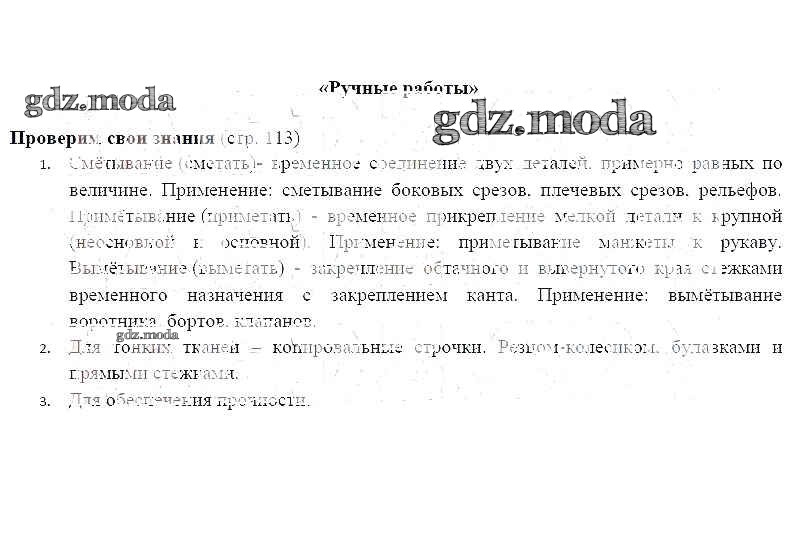 ГДЗ решение к заданию № 113 Технология 6 класс Синица Н.В. Вентана-граф 2019 ФГОС бесплатно на гдз.мода!