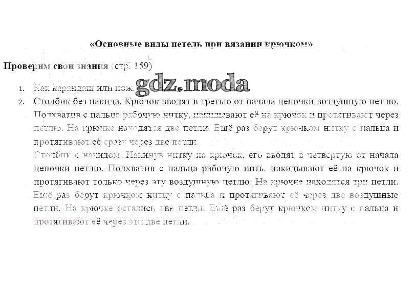 ГДЗ решение к заданию № 159 Технология 6 класс Синица Н.В. Вентана-граф 2019 ФГОС бесплатно на гдз.мода!
